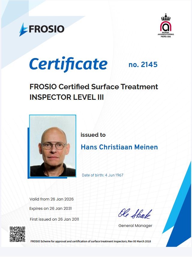 Coating inspecteur FROSIO Level 3 gecertificeerde met reg. Nr. 2145
